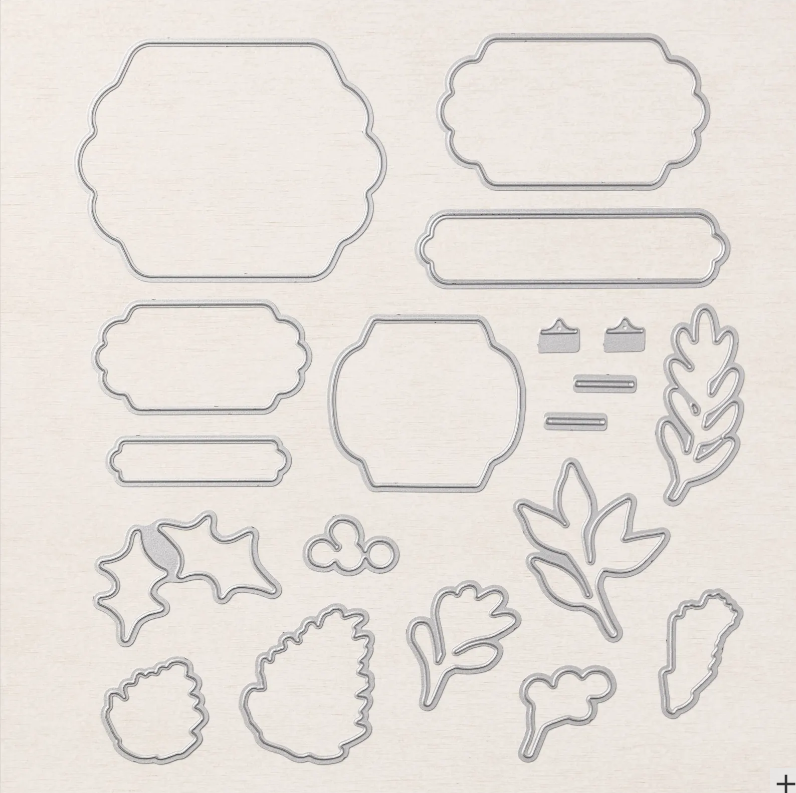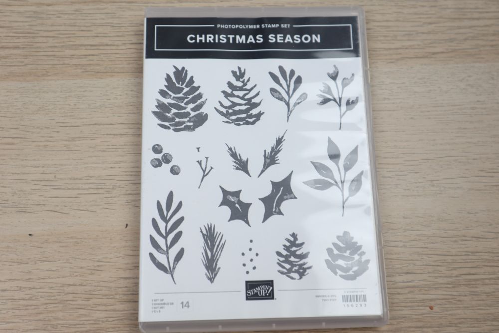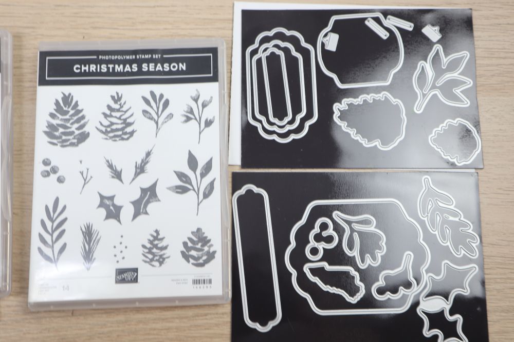 Gently used. Includes Christmas Season stamp set + Seasonal Labels Dies.