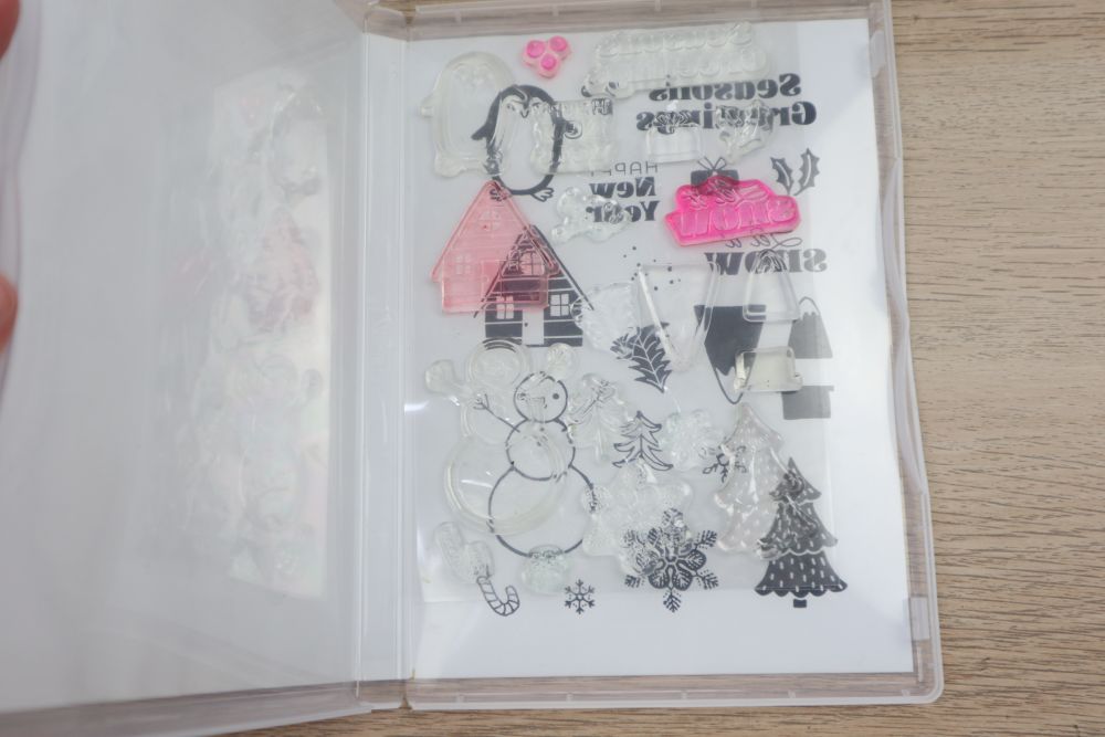 Inside the stamp set, you’ll find everything you need to build your own whimsical winter wonderland: a sweet penguin, a classic snowman, cosy cabin, stylised Christmas trees, snowflakes, mountains, holly, and small decorative details. Sentiments include Season’s Greetings, Let It Snow, and Happy New Year, making this set perfect for Christmas crafting and winter-themed cards long after the holidays.