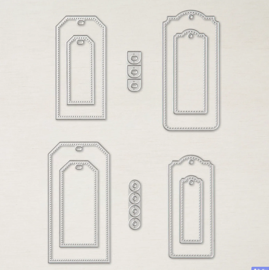 Each tag includes stitched detailing around the edge, giving your projects a polished, professional look every single time. You’ll also receive reinforced circle and tab dies allowing you to add a tidy finish to the tag’s hole—perfect for twine, ribbon, or decorative elements.