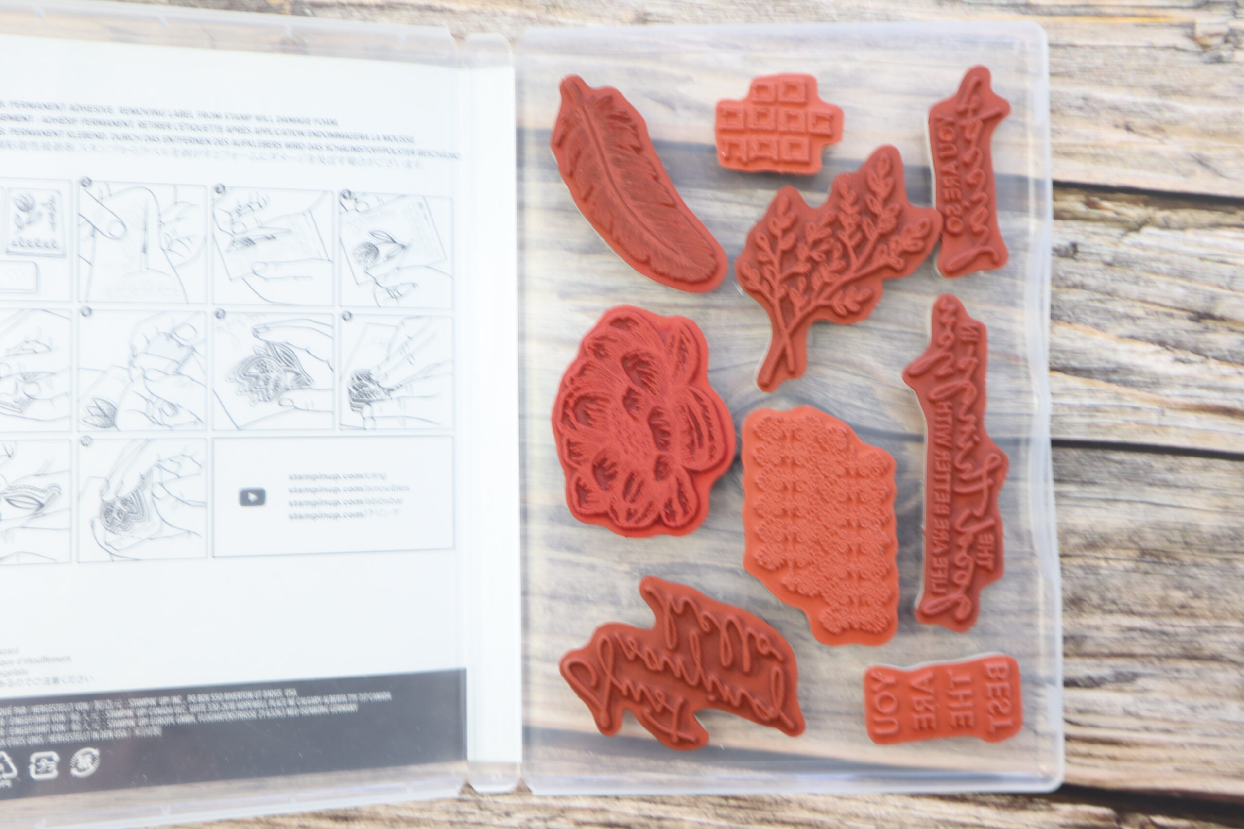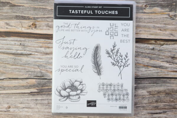 The Tasteful Touches stamp set includes stunning hand-sketched artwork—feathers, florals, foliage, textured backgrounds—and heartfelt greetings like “Just saying hello,” “You are so special,” and “The good things in life are better with you.” These stamps create an elegant, natural look that works beautifully for all-occasion cards.